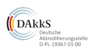 Durch die DAkkS nach DIN EN ISO/IEC 17025:2018 akkreditiertes Prüflabor Die Akkreditierung gilt nur für den in der Urkundenanlage D-PL-19367-01-00 aufgeführten Akkreditierungsumfang